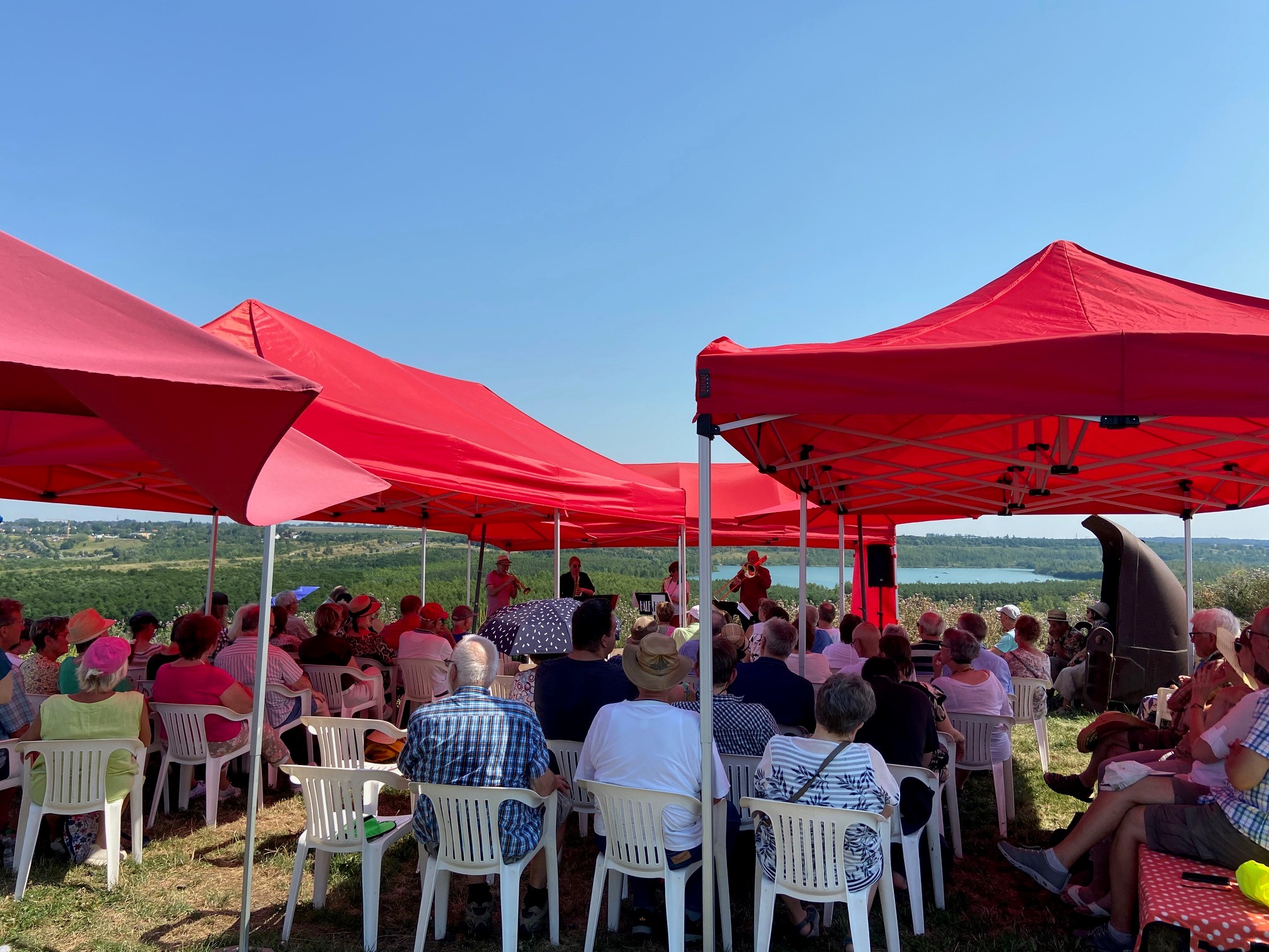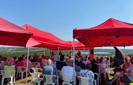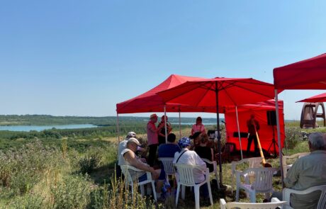Am Sonntag, den 21. Juli 2024, fand wieder das alljährliche “Deponiekonzert” vom soziokulturellen Zentrum KuHstall Großpösna auf unserer Aussichtsplattform statt. Dieses Mal war die Gruppe Half&Half aus Berlin zu Gast – ein Bläserquartett mit vielen Hits im Gepäck. Auch das Alphorn war für ein paar Lieder zu hören und brachte alpenländisches Flair ins Leipziger Flachland. Trotz Temperaturen von über 30 Grad kamen um 11 Uhr rund 70 Gäste zu der Veranstaltung. Wer nicht ganz so fit war, konnte das Shuttle nach oben nutzen. Ganz besonders wurde von der tollen Aussicht auf die Stadt Leipzig und den Landkreis Leipzig geschwärmt und das besondere Flair von einem Konzert an so einem Ort betont. Die Veranstaltung hat definitiv schon ihre Stammgäste.